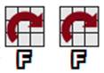 Наряду с буквенной записью процессов применяется графическая форма записи, где элементарные операции изображаются рисунком фасадной грани с соответствующими стрелками, обозначающими направления поворотов соответствующей грани.